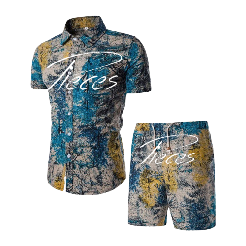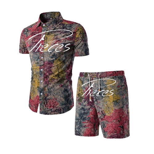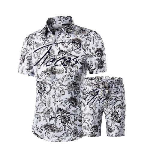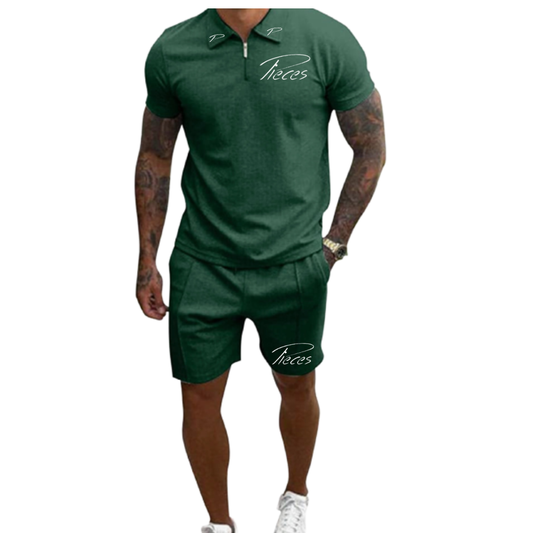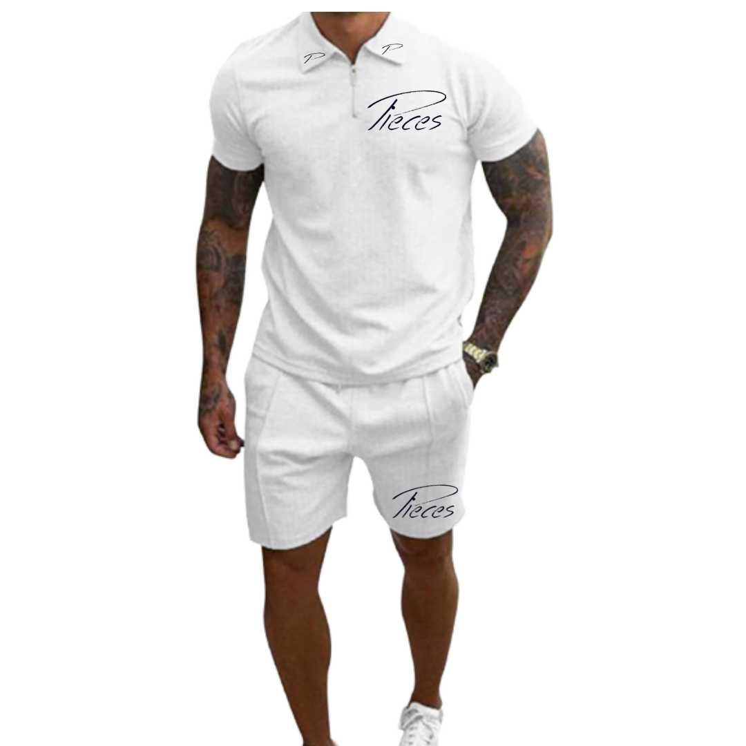 FASHIIONABLE MEN'S ZIP-UP SHIRT AND MATCHING COTTON SHORTS